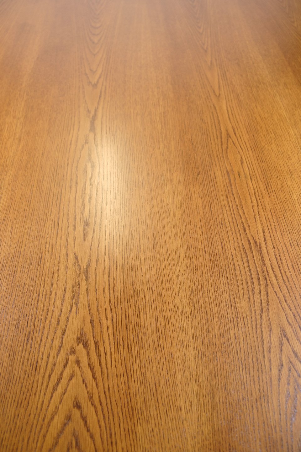 — Materialer: Egetræsoverflade, aluminiums kant, metalben