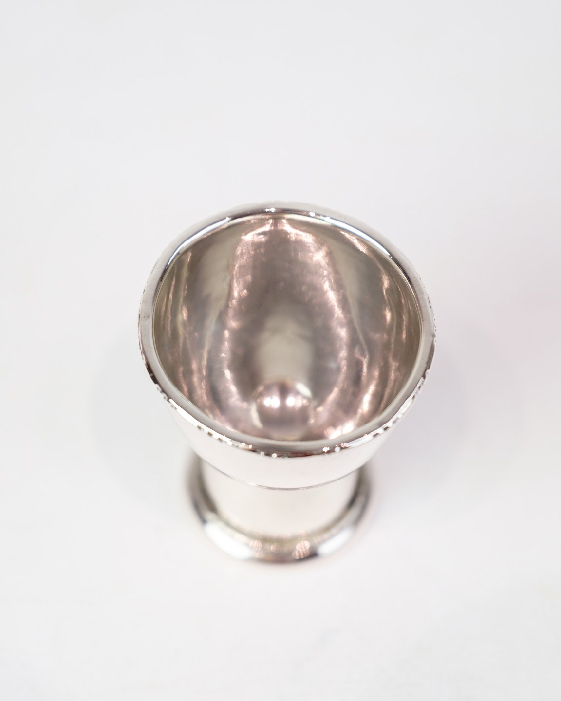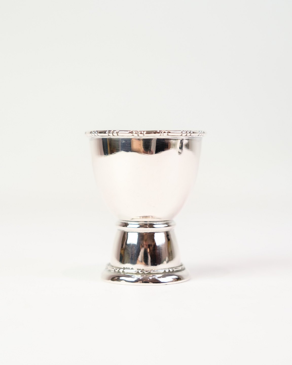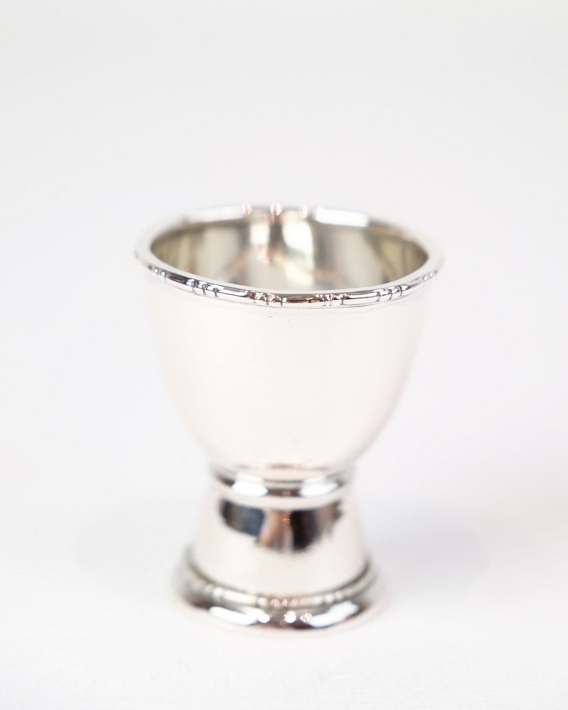 SolgtÆggebæger i ægte sølv. Enkelt design uden indgravering med dekoreret kant.