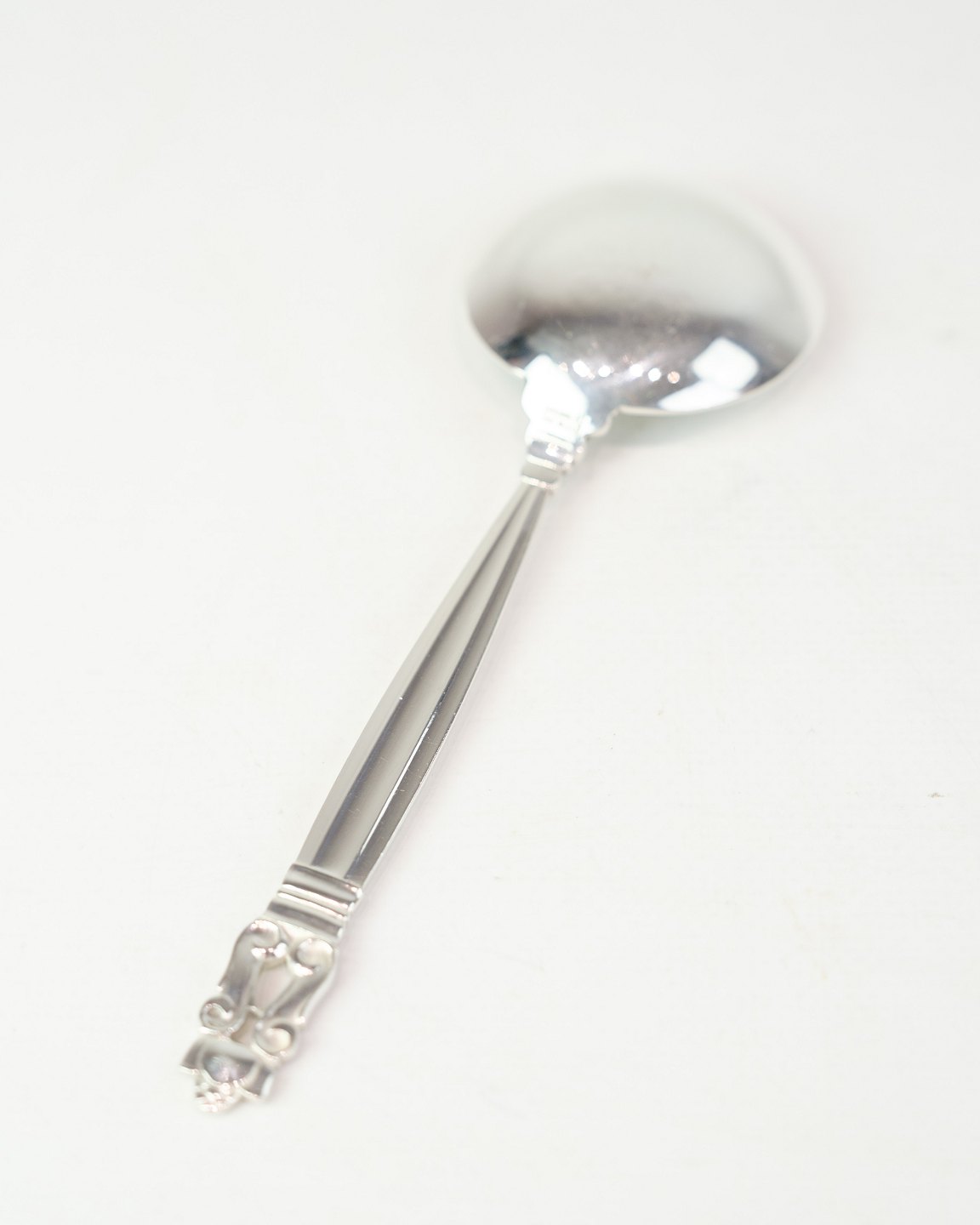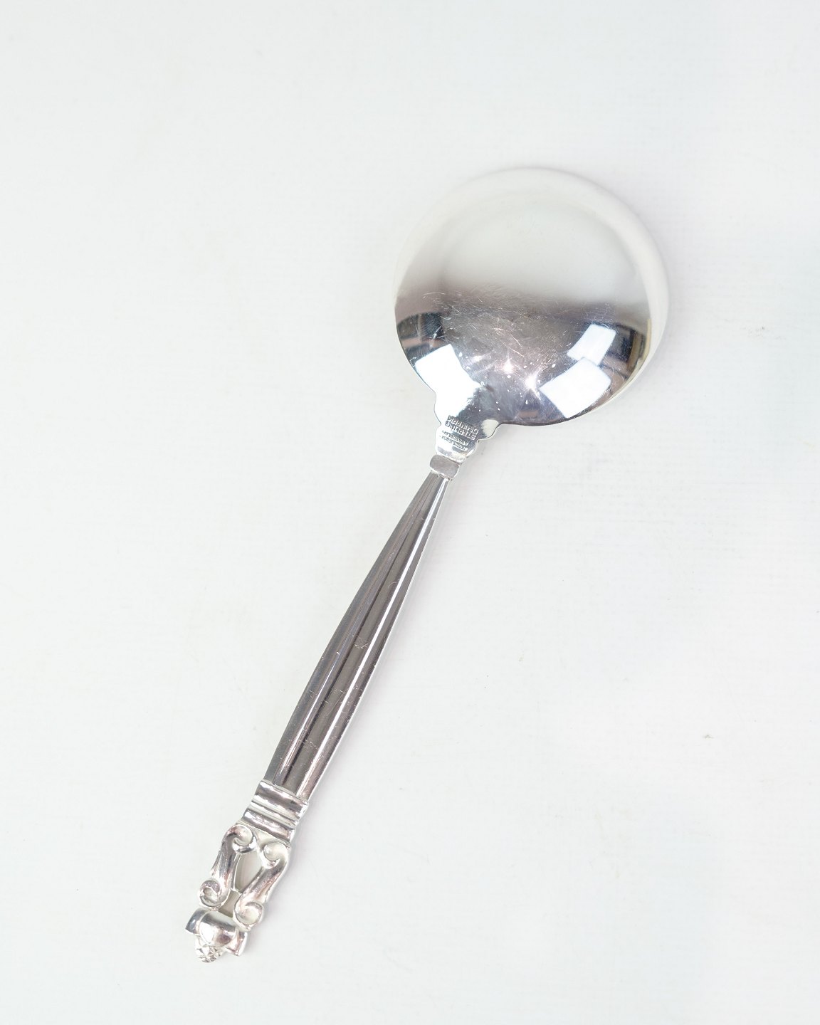 Georg Jensen suppeske i Konge mønster. Sterling sølv, design af Johan Rohde 1915. Længde 16 cm.