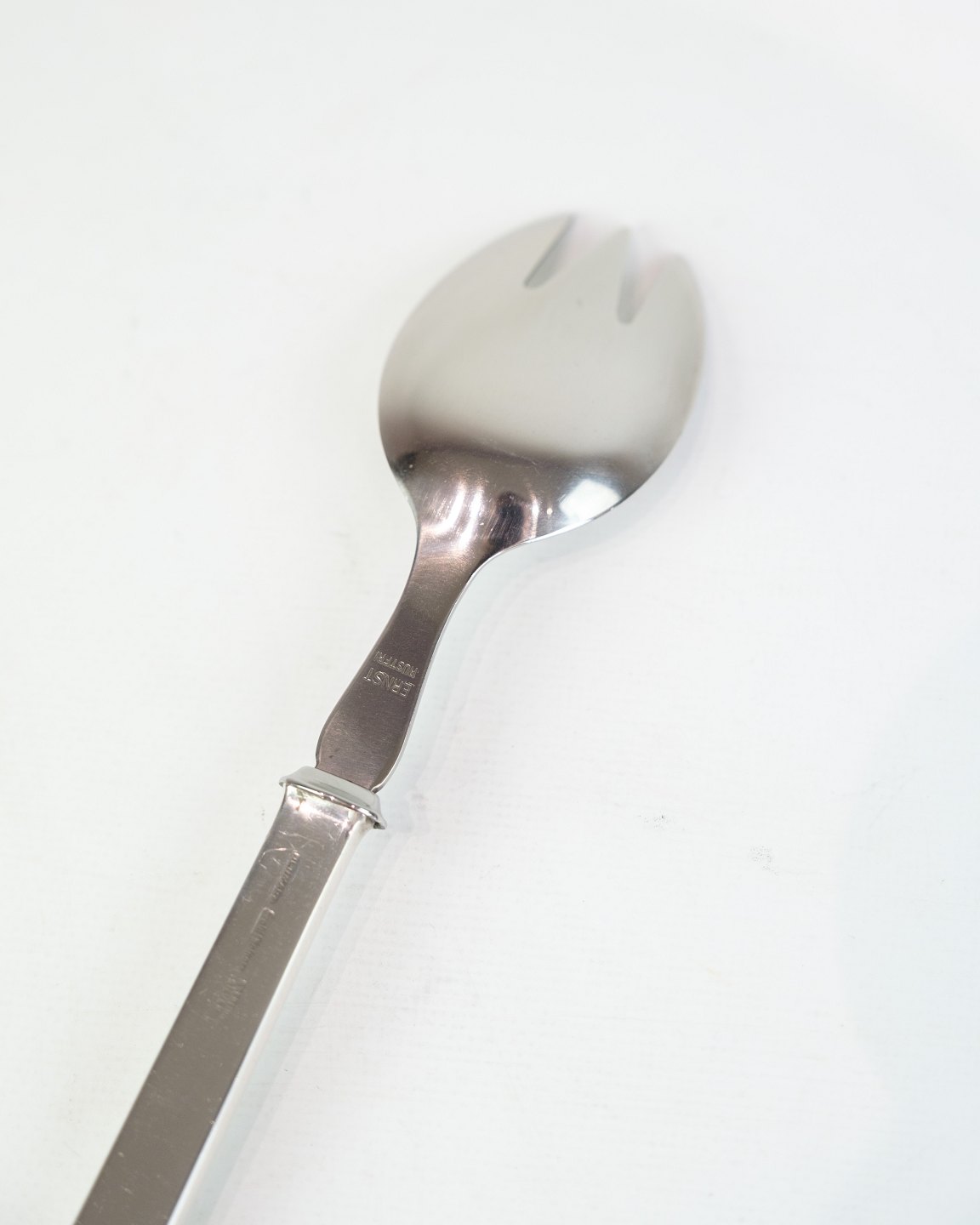 Evald Nielsen salatsæt i ægte sølv. Congo mønster No. 32. Længde 23 og 23 cm. Klassisk dansk sølvarbejde.