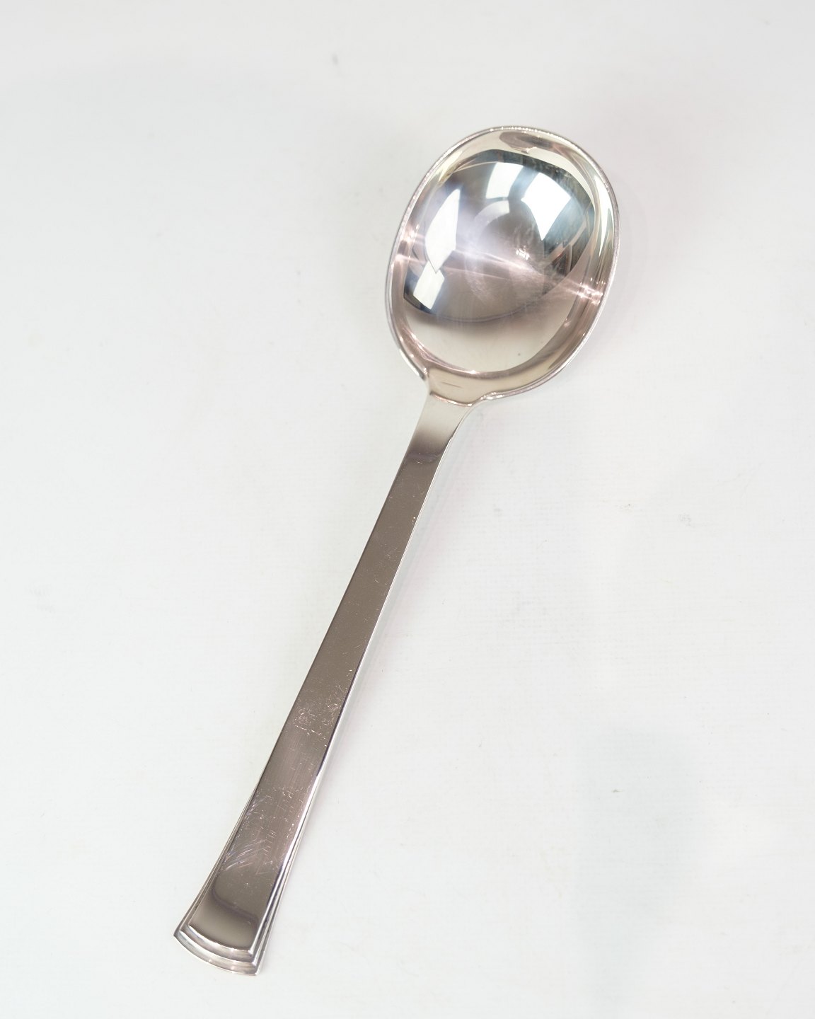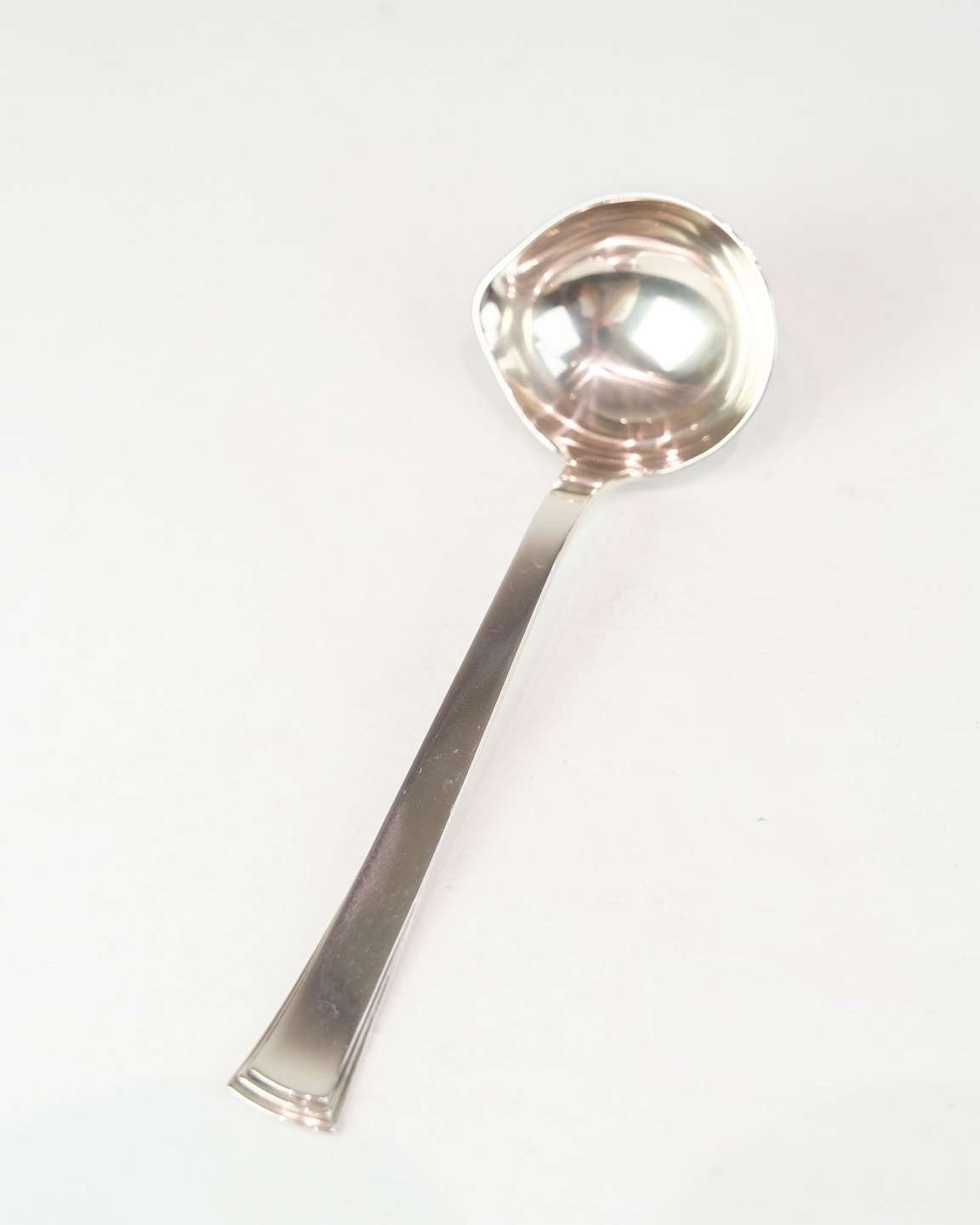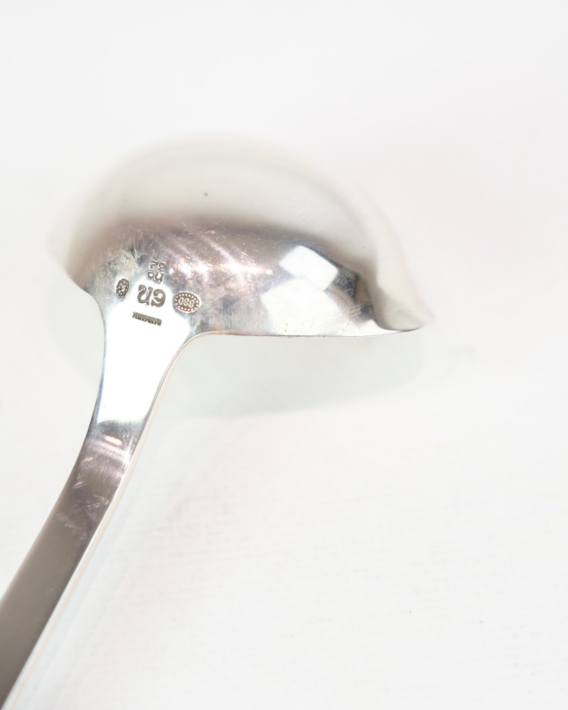 Evald Nielsen serveringsske og sauceske i ægte sølv. Congo mønster No. 32. Længde 23 og 18 cm. Klassisk dansk sølvarbejde.