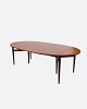 Stort ovalt spisebord designet af Arne Vodder og produceret af Sibast Møbelfabrik i 1960’erne. Bordet er udført i teaktræ og der lavet 2 tillægsplader á 50cm som følger med til bordet.