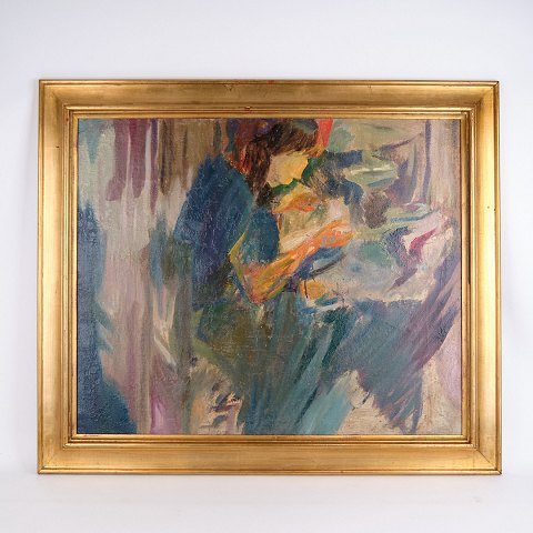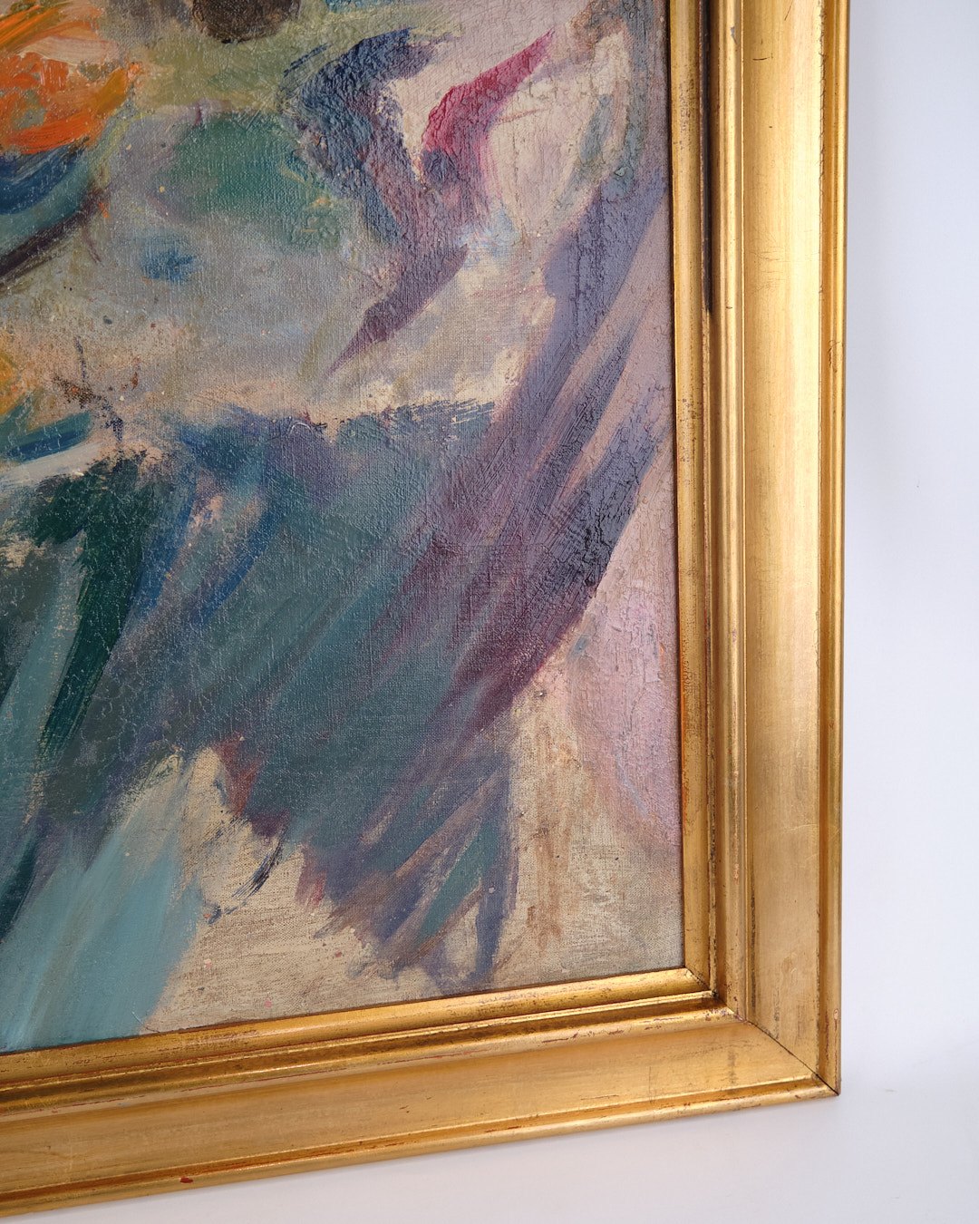 SolgtAbstrakt oliemaleri af kvinde fra 1930’erne. Olie på lærred med guldramme.