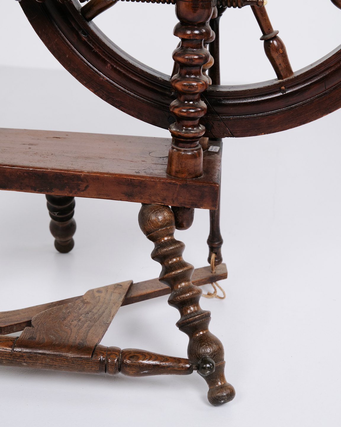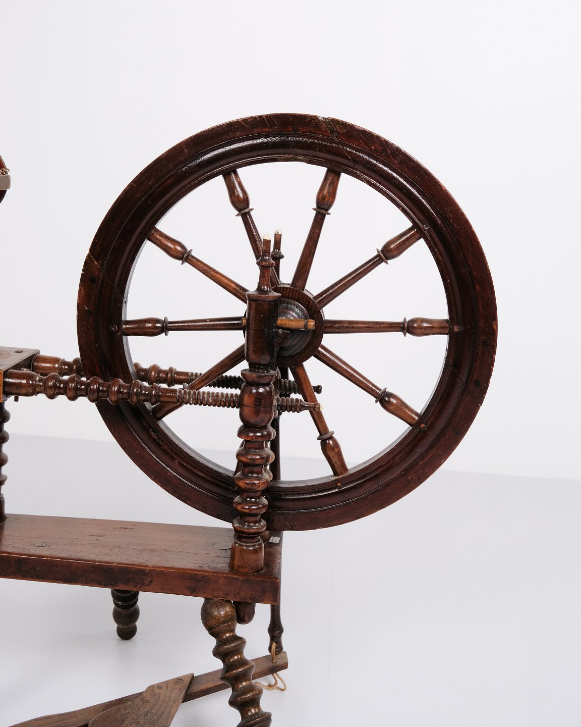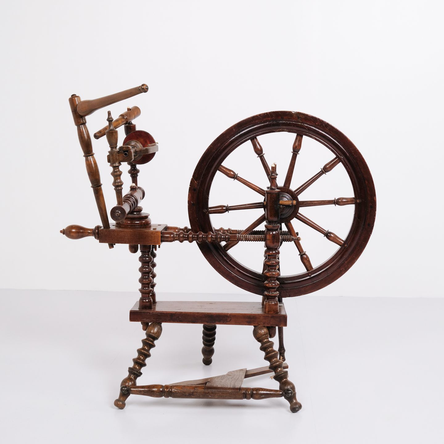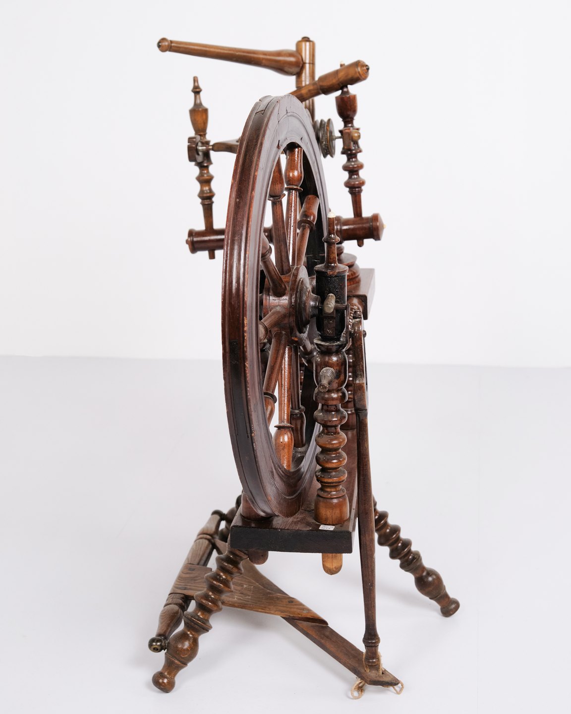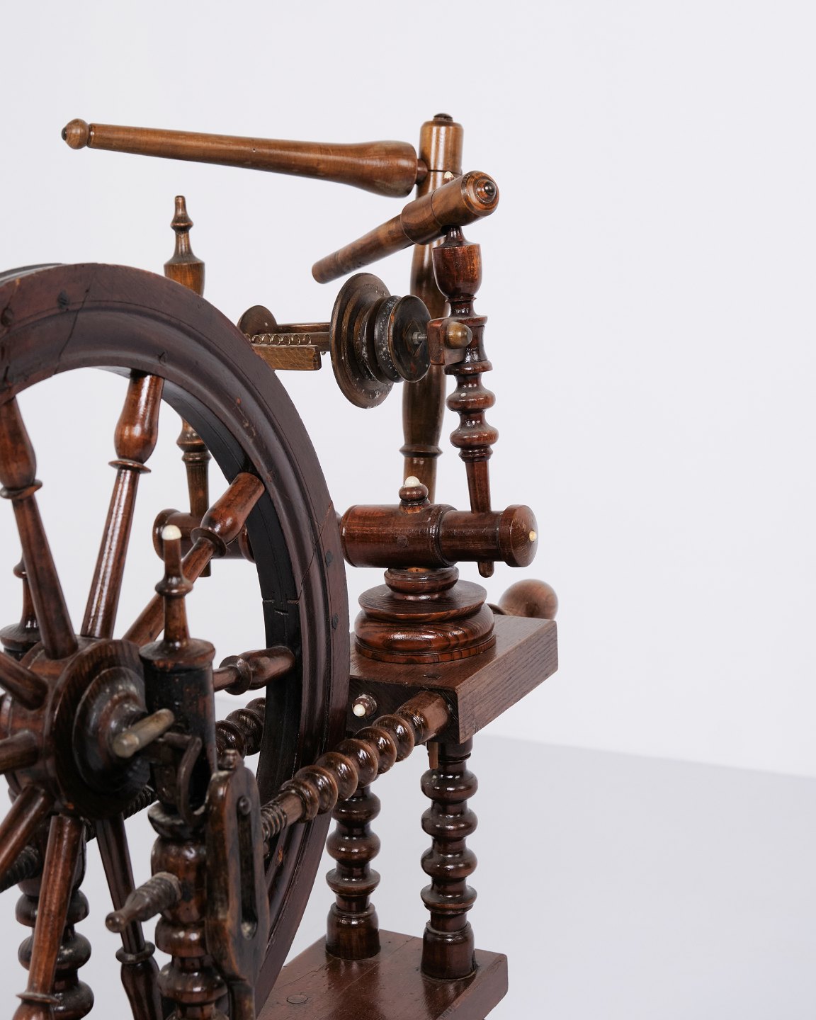 Antik spinderok fra 1880’erne i håndpoleret mørkt træ.