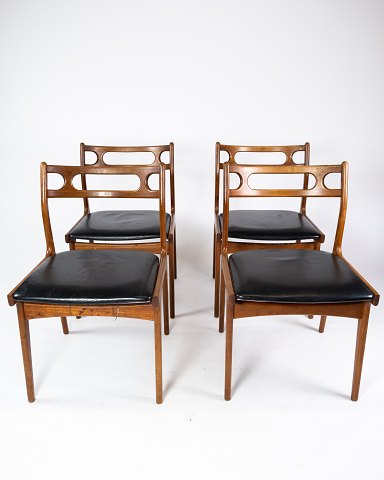 Sæt af seks spisestuestole, model 3103, også kaldet T-stolen eller Hammerstolen, fra Fritz Hansen. Stolene er professionelt behandlet og restaureret på vores værksted og fremstår i flot stand. Udstyret med originale Fritz Hansen- og Danish Control-labels, som dokumenterer ægthed og produktion.