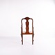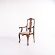 Armstol fra midten af 1800-tallet udført i nøddetræ med rigt frugttræ-intarsia i klassisk Queen Anne stil. Dekoreret med detaljerede motiver af blomster, fugle og sommerfugle. Overfladen er håndpoleret med shellak, hvilket fremhæver træets varme glød og det fine håndværk.