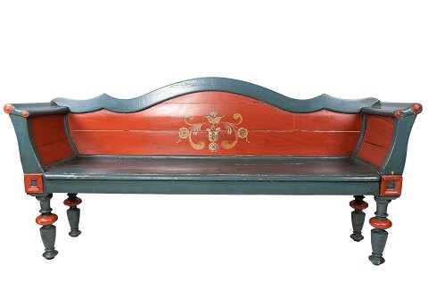Svensk slagbænk - Gråmalet - Antik - bemalet fyrretræ - År 1860'erne