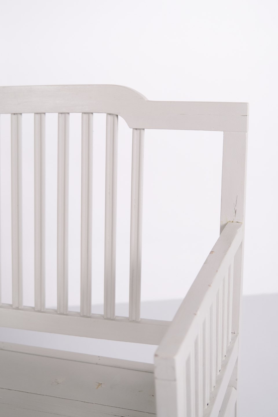 Antik Slagbænk Med Høj Ryg - Gråmalet - Fyrretræ - Opbevaring - År 1860erne