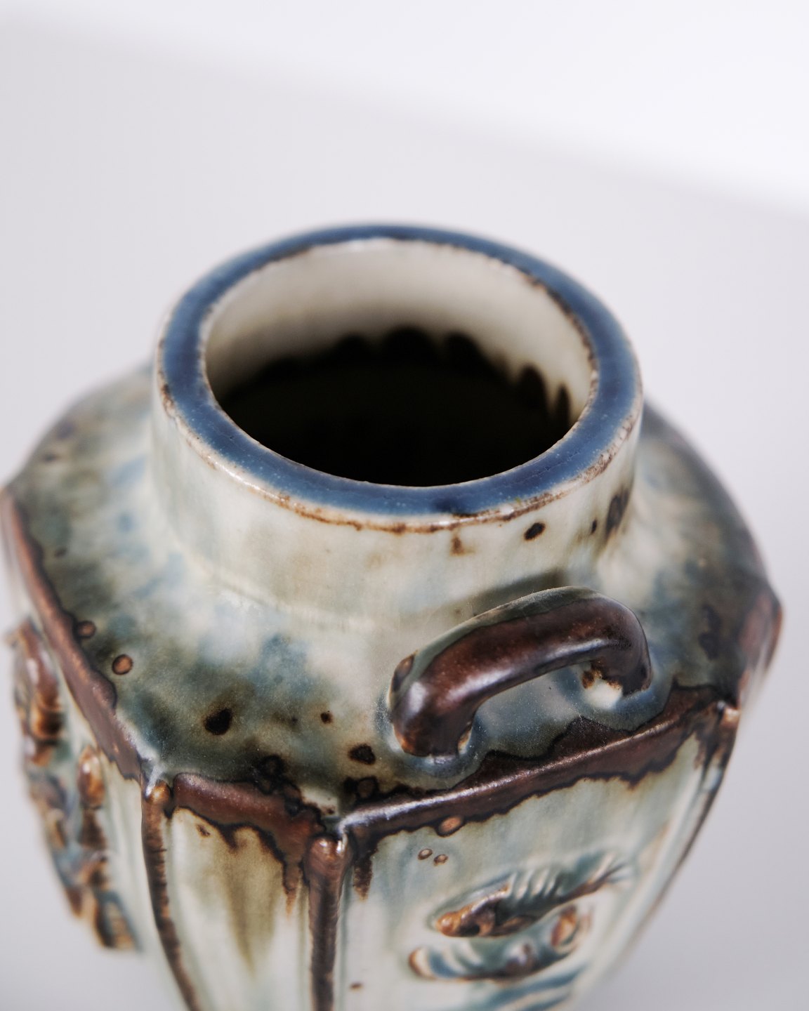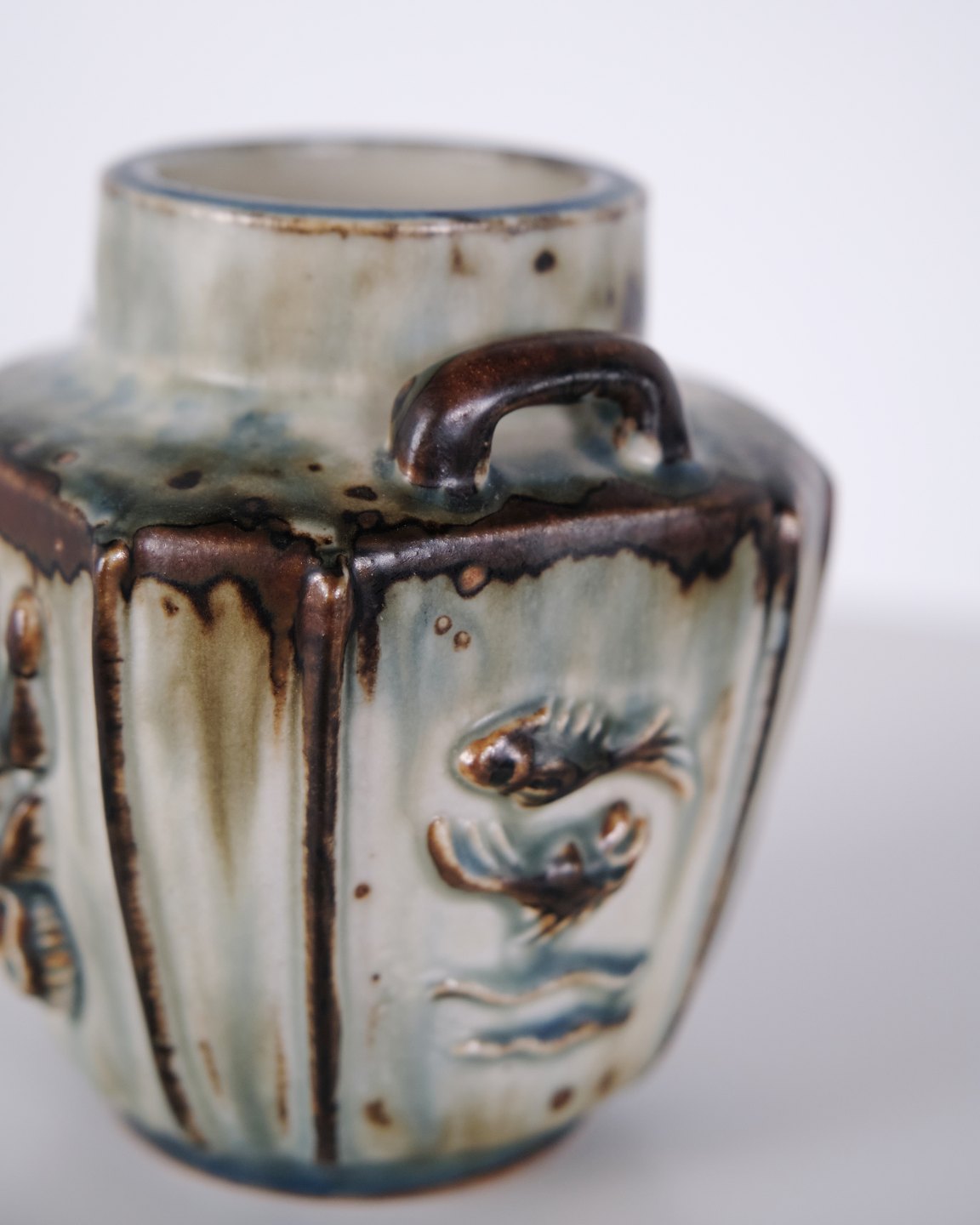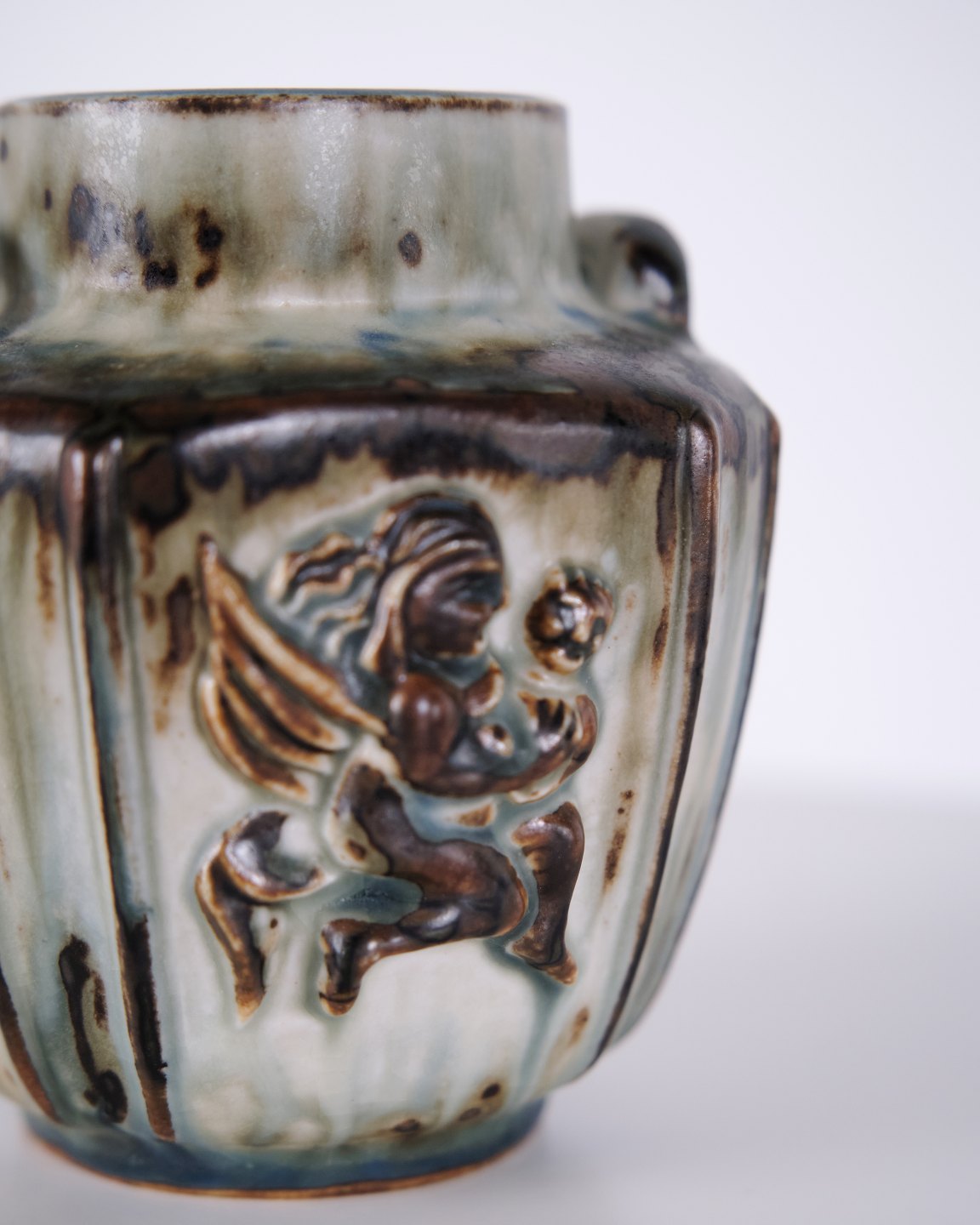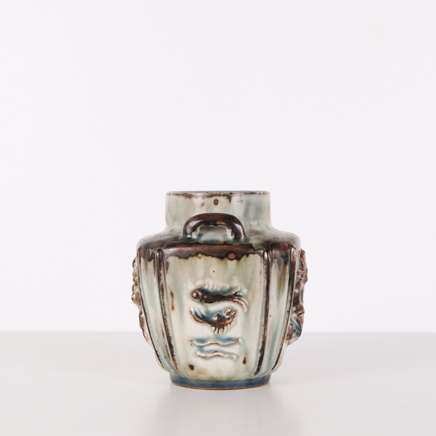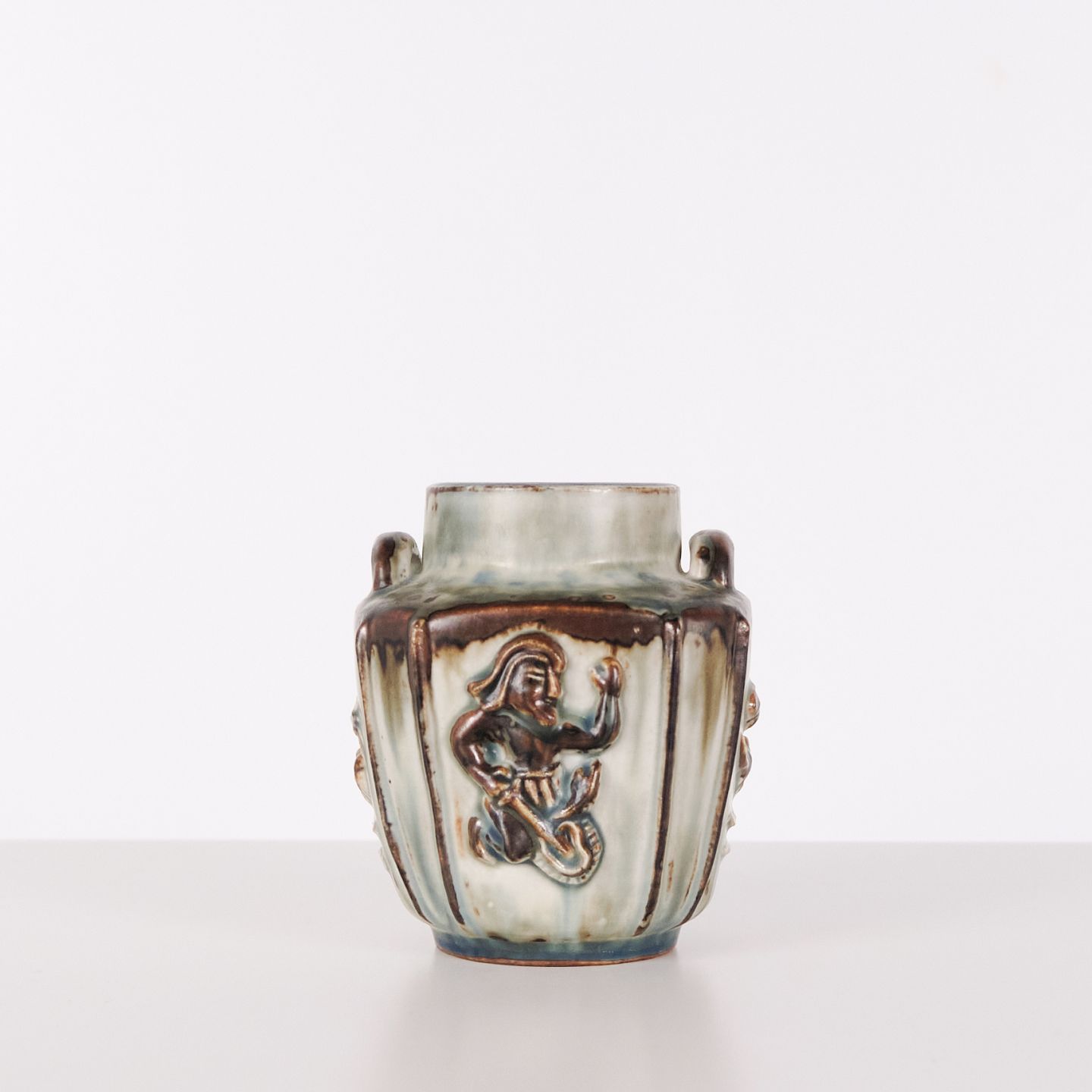 Stentøjsvase designet af Bode Willumsen for Royal Copenhagen. Vasen er modelleret i stentøj med reliefdekoration og produceret hos Royal Copenhagen i perioden 1969–1973. Modellen er kendt for sin plastiske overfladebehandling og tydelige håndværksmæssige udformning. Stemplet og signeret med monogram samt modelnummer 20121.
