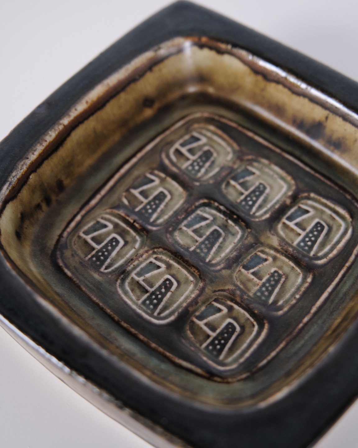 Stentøjsskål, også anvendt som askebæger, model 21872, designet af Jørgen Mogensen for Royal Copenhagen. Udført i stentøj med en enkel, funktionel udformning, som kendetegner Jørgen Mogensens arbejde med brugsgenstande hos Royal Copenhagen i midten af det 20. århundrede. Modellen egner sig både som askebæger og som lille skål.