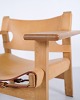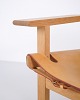Børge Mogensen Den Spanske Stol model BM2226 i naturligt patineret kernelæder fra 1960’erne. Klassisk dansk designikon med robust udtryk.