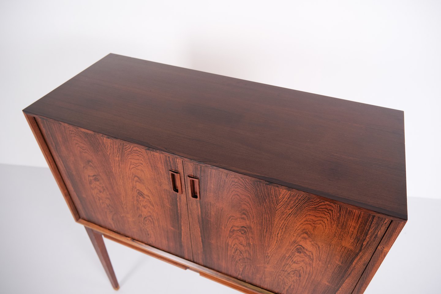 Skab designet af Johannes Sorth og fremstillet hos Bornholm Møbelfabrik i Danmark i midten af det 20. århundrede. Møblet er udført i palisander og fremstår med de rene linjer og den høje håndværksmæssige kvalitet, som kendetegner dansk møbeldesign fra perioden.