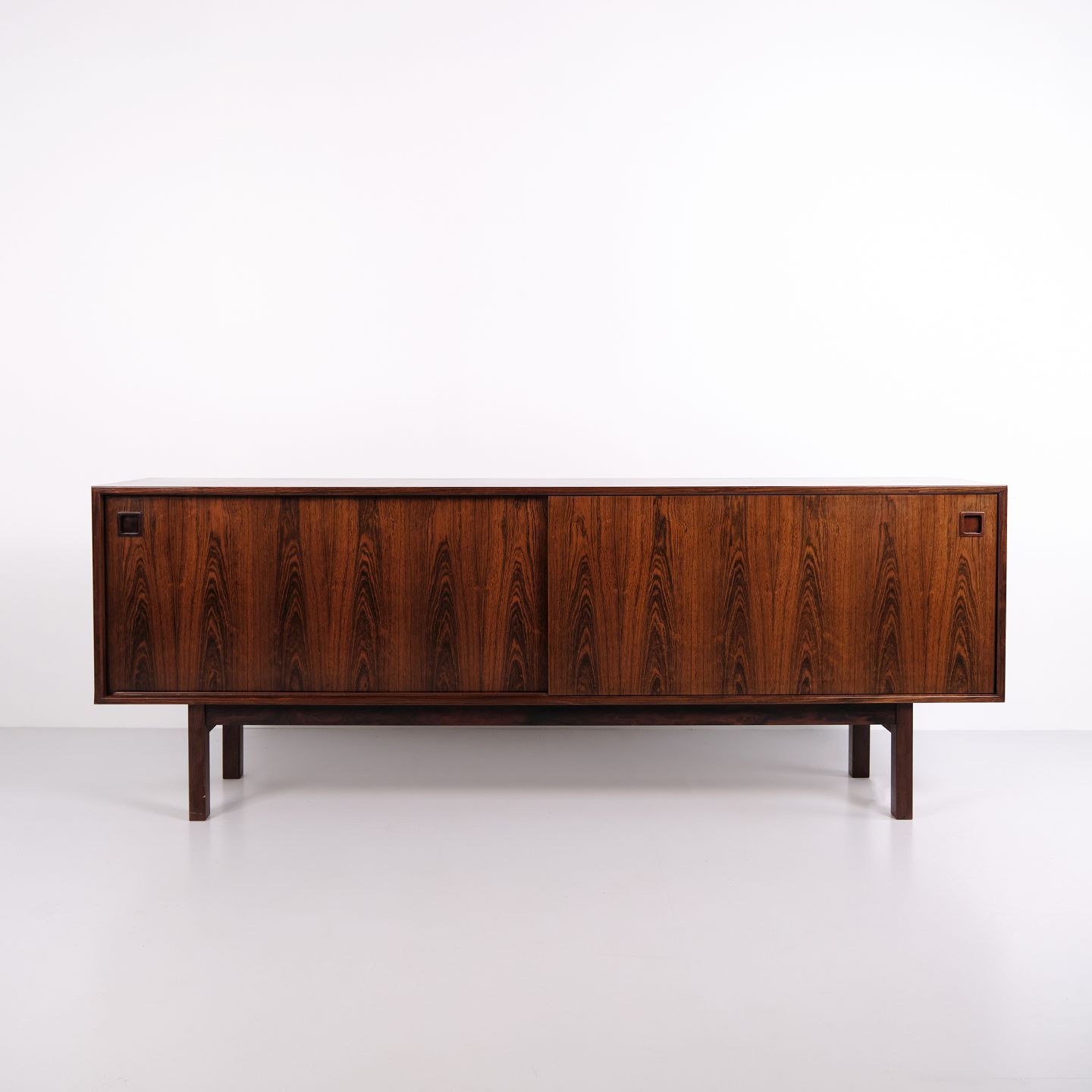 Skænk, model 21, designet af Gunni Omann og fremstillet hos Omann Jun Møbelfabrik i Danmark i 1960’erne. Møblet er udført i palisander og er et klassisk eksempel på dansk møbeldesign med fokus på funktionalitet, rene linjer og præcise snedkerdetaljer.