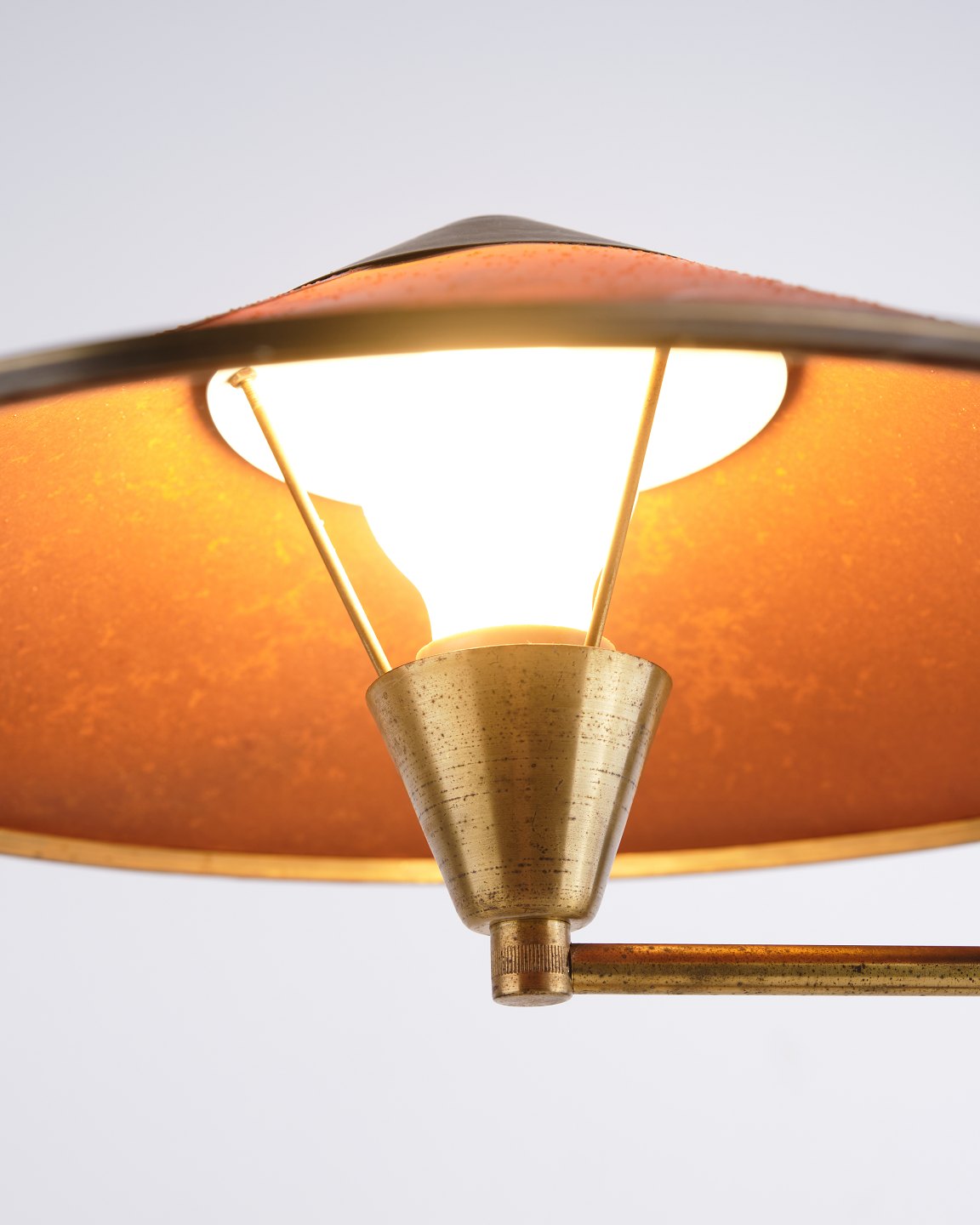 — Materiale: Patineret messing og skærm i svinehud