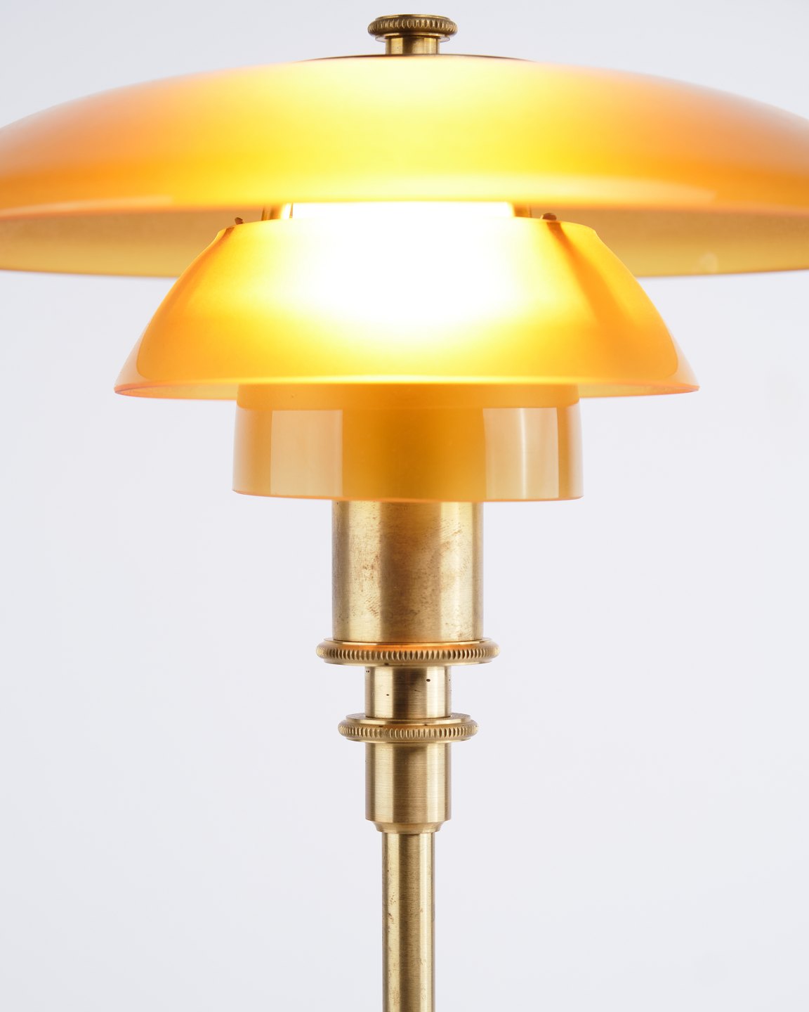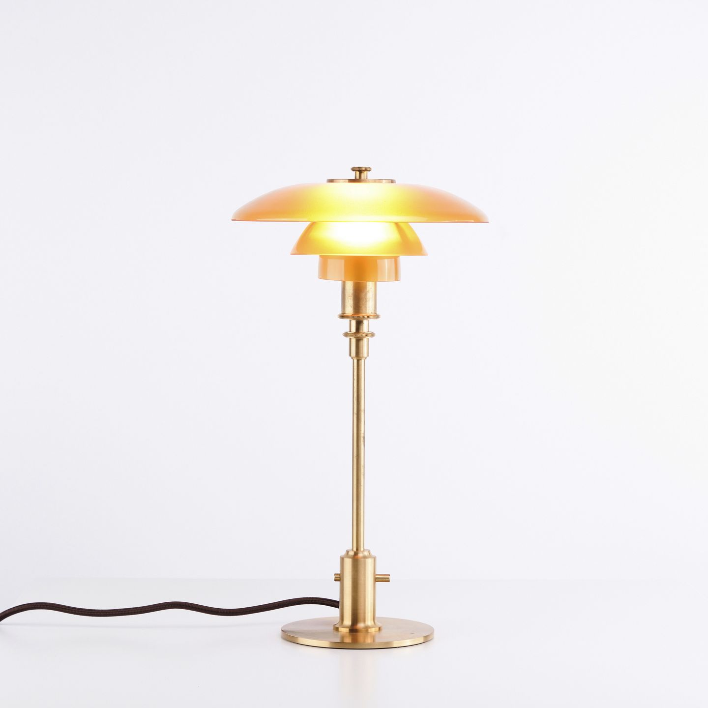 Poul Henningsen Bordlampe Model PH 2/1 Limited Edition i Messing med Ravfarvede Skærme, Louis Poulsen