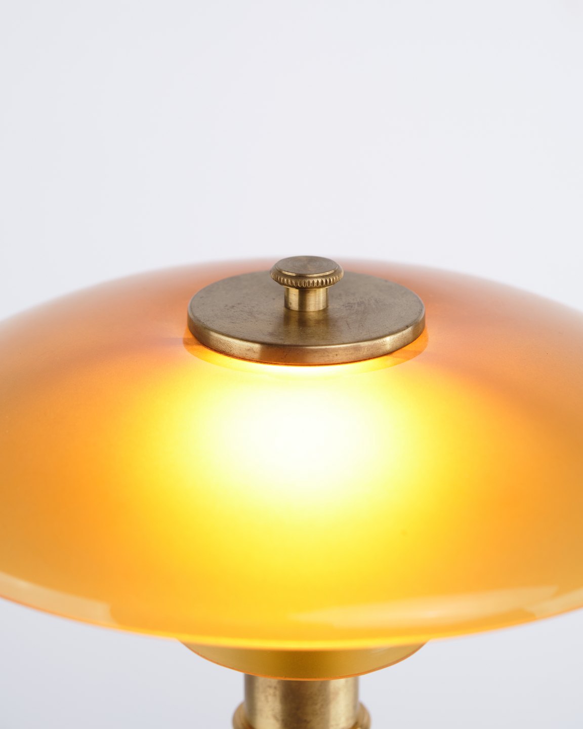 — Materiale: Messing og ravfarvet glas