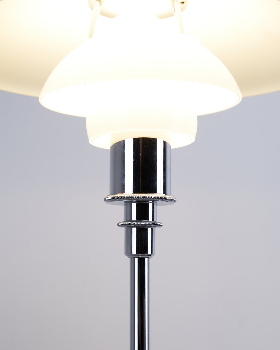 PH 3½-2½ gulvlampe i krom med opalglas fra Louis Poulsen. Designet af Poul Henningsen med klassisk dansk lysdesign og elegant udtryk.