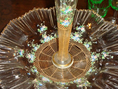 Glasopsats fra Fyns glasværk fra ca år 1860 med fine blomster.